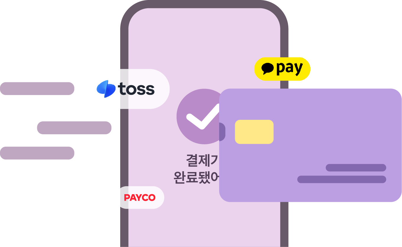 쉼표샵은 토스페이, 페이코, 네이버페이, 카카오페이 등 다양한 간편결제 서비스를 지원해 빠르고 안전하며, 손쉬운 구매가 가능합니다.